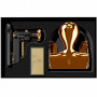 Stolová zošívačka M-1 a sada dierovačov M-200. Oba prvky v čiernom lakovaní a 23 karátovom zlate.