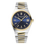Oceľový náramok v kombinácii oceľ / žlté zlato. Celková dĺžka 158 mm. Preklápacia spona s tlačidlami. Šírka spony 15 mm, šírka remienka 21.5 mm. Dodatočný remienok: modrý gumený 19.5 × 14 mm.