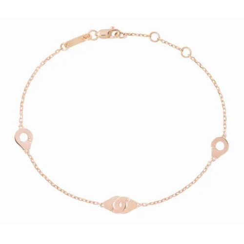 Náramok Menottes dinh van multi‑motif z 18‑karátového ružového zlata nadväzuje na ikonický dizajn rovnomennej kolekcie. Jemná kompozícia motívov Menottes – v striedaní solo a duo – vytvára moderný, vzdušný rytmus, ktorý symbolizuje spojenie, slobodu a nadčasovú eleganciu.