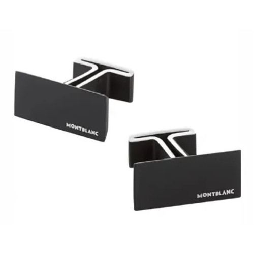 Montblanc M manžetové gombíky z brúsenej nerezovej ocele s čiernou PVD úpravou. Obdĺžnikový minimalistický dizajn s kontrastom svetla a tieňa, vytvorený v spolupráci s dizajnérom Marcom Newsonom.