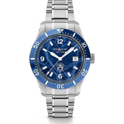 Úplne prvé športové potápačské hodinky pre Montblanc, Montblanc 1858 Iced Sea Automatic Date, majú ciferník s ľadovcovým vzorom, ktorý vytvára dojem, že sa pozeráte do hlbín ľadovca. Tento ciferník s modrým ľadovcovým vzorom je inšpirovaný Mer de Glace - More of Ice - hlavným ľadovcom masívu Mont-Blanc. Jeho textúra bola dosiahnutá pomocou takmer zabudnutej techniky predkov nazývanej gratté-boisé. Hodinky sa dodávajú s jednosmerným dvojfarebným keramickým rámom, gravírovanou zadnou časťou puzdra a kužeľovým vymeniteľným náramkom z nehrdzavejúcej ocele s jemným nastavením pre presné prispôsobenie. Hodinky zodpovedajú norme ISO 6425 pre potápačské hodinky a sú vodotesné do 300 metrov.