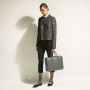 Táto elegantná taška má priestranný hlavný priestor na štýlové prenášanie dokumentov A4, elektronických zariadení a ďalších profesionálnych potrieb. Písacie potreby si môžete uložiť do vyhradených vreciek, zatiaľ čo prispôsobiteľný modulárny dizajn umožňuje pripojenie k iným zbierkovým taškám Sartorial. Luxusná potlačená koža v stredne sivej farbe všetko spája a dodáva jej nádych sofistikovanosti.