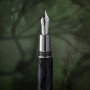 - ručne vyrobený hrot z masívneho zlata Au750 / 18K s rhodiovaným povrchom, so špeciálnym rytím -M-, systém plnenia: nasávanie atramentu