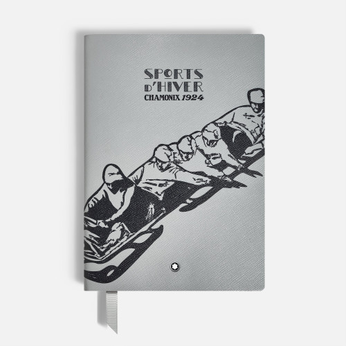 Zápisník č. 146 malý, kolekcia olympijského dedičstva Chamonix 1924, sivý – lemovaný. Vyrobené v Taliansku. 96 listov/192 strán. Rozmery 150 x 210 mm. Na oslavu stého výročia Meisterstücku v roku 2024, Montblanc vzdáva hold pôvodu ikonického písacieho nástroja v kolekcii inšpirovanej duchom olympijských hier v roku 1924 v Chamonix. Náhodou znamenal pre značku rok 1924 uvedenie písacieho nástroja, ktorý sa potom stal jedným z jej majstrovských diel, av tom istom roku sa v Chamonix konali prvé zimné olympijské hry. Kolekcia Meisterstück x Olympic Heritage Chamonix 1924 je výsledkom intenzívneho výskumu a obohacujúcich výmen s Olympijským múzeom a Medzinárodným olympijským výborom na oslavu umenia a dizajnu minulých olympijských hier. Zápisník je vyrobený z modrošedej teľacej kože a obsahuje umelecké dielo predstavujúce bobistov; šport, ktorý mal svoj olympijský debut na zimných olympijských hrách v Chamonix 1924 a dostal sa aj do centra pozornosti na oficiálnom plagáte hier. Medzinárodný olympijský výbor – Všetky práva vyhradené. Oficiálny olympijský licencovaný produkt.