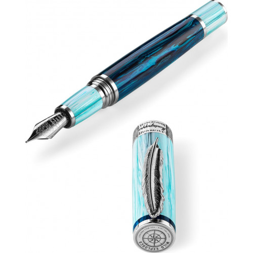 Dvojfarebná Montegrappa napodobňuje arktické ročné obdobia v žiarivých odtieňoch modrej. Naša patentovaná remeselná živica spája výrobné zvyšky a minimalizuje plytvanie materiálom.