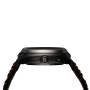 Dvojitý čierny kožený remienok s ochrannou vnútornou podšívkou, systémom rýchleho uvoľnenia a vzorom z alcantary.