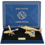 Sada pozostávajúca z multifunkčného pera Line D Eternity XL a zapaľovača Le Grand Dupont. Pero Line D Eternity XL: Multifunkčné pero Line D Eternity XL pozostávajúce z rolerového nastavca a nastavca s hrotom zo 14-karátového zlata. Piest je súčasťou balenia. Lesklé modré lakované pero S.T. Dupont s chápadlami v tvare chobotnice vygravírovanými v lakovanom zlatom prevedení. Vrchnák zdobený náhrdelníkmi a písmenom N z Nautilus v lakovanom zlatom prevedení. Agrafo inšpirované navigačným kompasom. Vrchná časť pera je inšpirovaná modrým lakovaným okienkom S.T. Dupont, puzdro s vygravírovanými nitmi ponorky, vertikálna vrtuľa na spodnej strane pera.