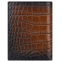 Táto vertikálna peňaženka z celotelovej teľacej kože s krokodílím vzorom je ručne patinovaná a ponúka jedinečné odtiene havany.