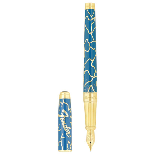 Veľké modro-zlaté plniace pero Line D Eternity Kintsugi so zlatými trblietkami. Zlaté povrchové úpravy.