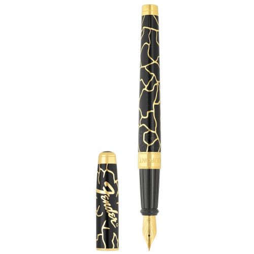 Veľké čierno-zlaté plniace pero Line D Eternity Kintsugi so zlatými trblietkami. Zlaté povrchové úpravy.