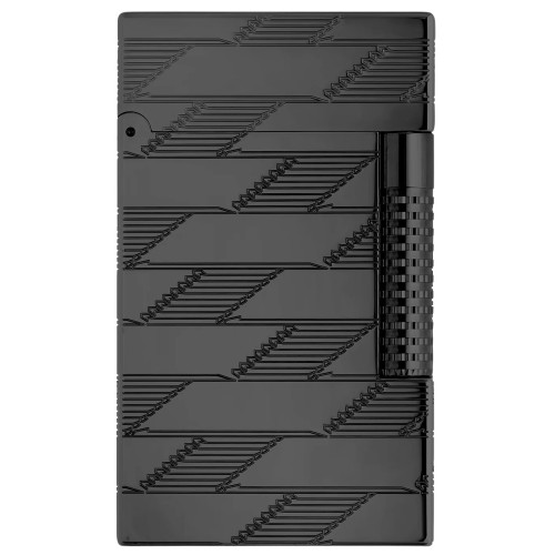 Zapaľovač Le Grand Dupont, gilošovaný, zdobený motívom Monogram 1872 a s čiernou povrchovou úpravou. S dvojitým zapaľovacím systémom – žltým alebo modrým plameňom.