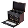 Precízne skonštruovaný naťahovač hodiniek s klasickým dizajnom, Savoy obsahuje 6-dielny úložný priestor na hodinky, drevený rám, čiernu textúrovanú hodvábnu podšívku, uzamykateľný sklenený kryt, puzdro z burlwood, podsvietený LCD displej, pozlátený hardvér a 2 nabíjacie moduly.
